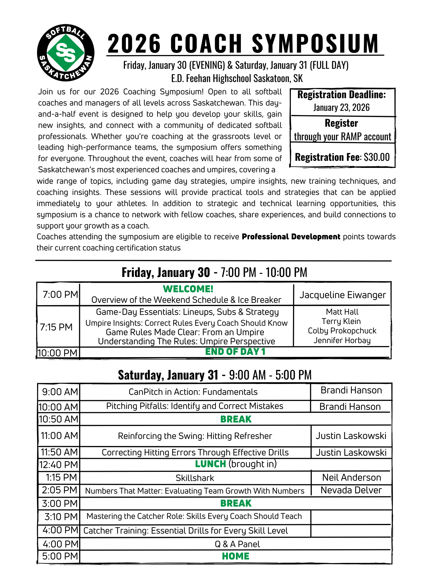 🥎 2026 Coaching Symposium REGISTRATION NOW OPEN! 🥎